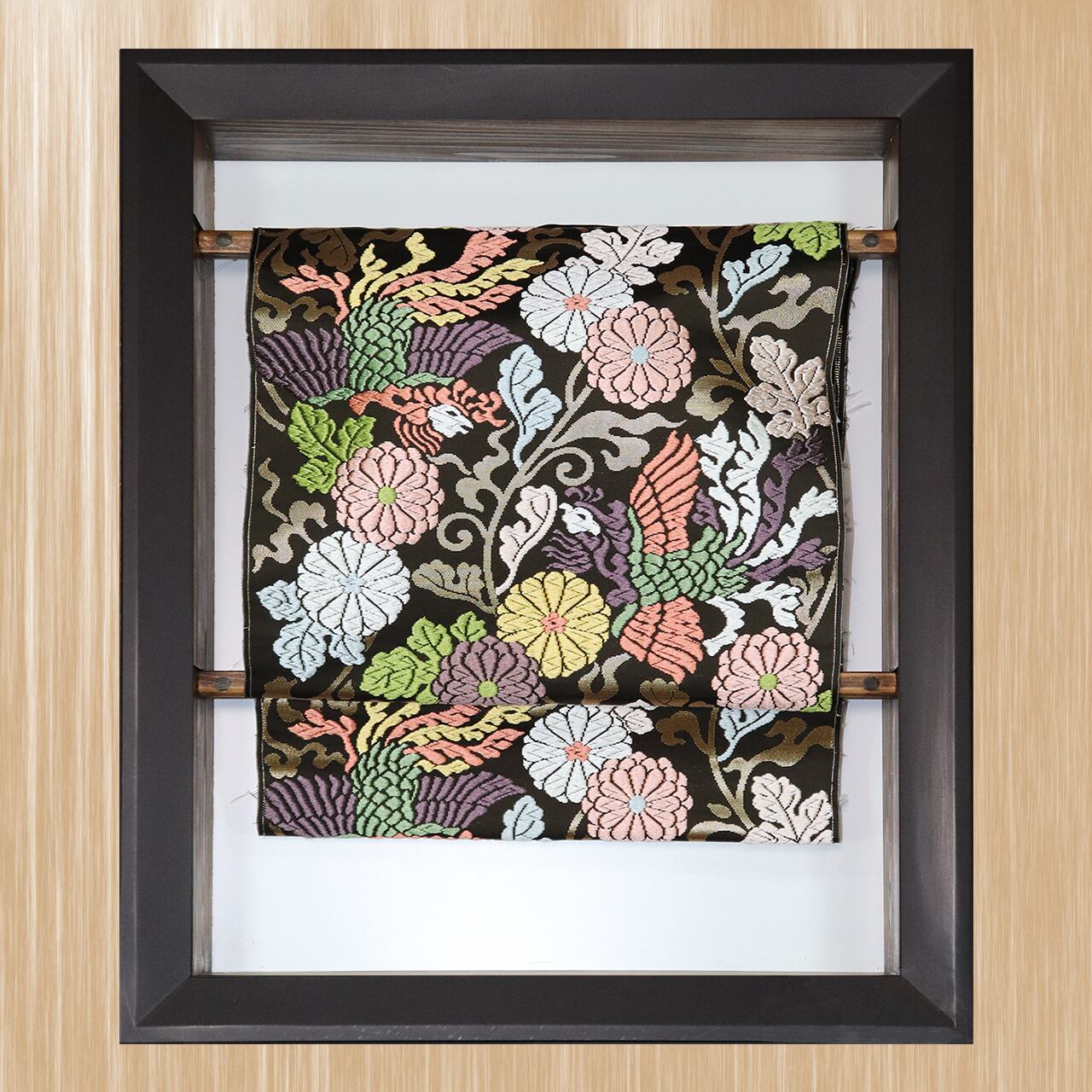 西陣織の織元、帯屋河合康幸の唐織袋帯 能装立涌菊鳳文を額装しました。