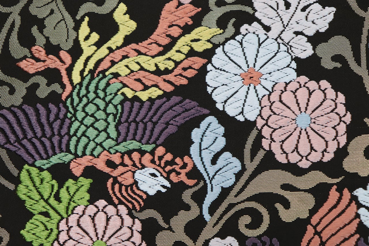 長寿を現す吉祥文様でもある菊と天の使いでもある鳳凰を合わせた、大変めでたい文様です。